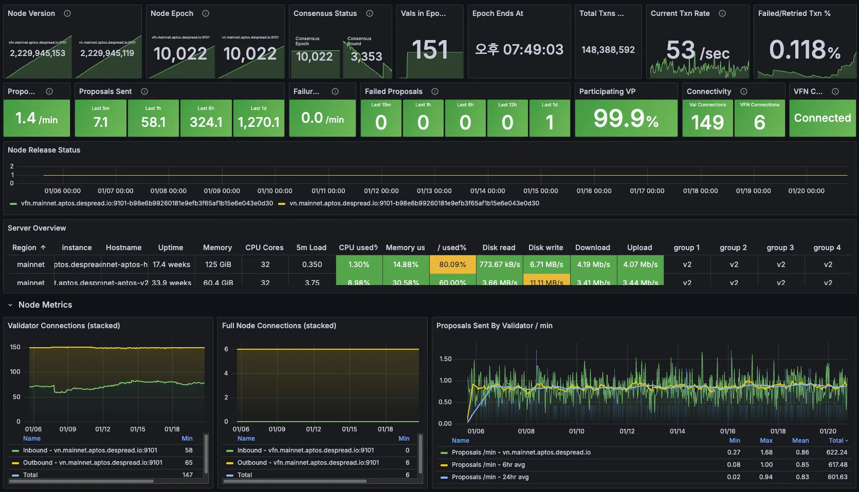 We also provided an Aptos RPC node to support the community, ensuring accessibility and reliability. Real-time server status was made publicly available through despread.statuspage.io, offering transparency and trust for both the foundation and external stakeholders.